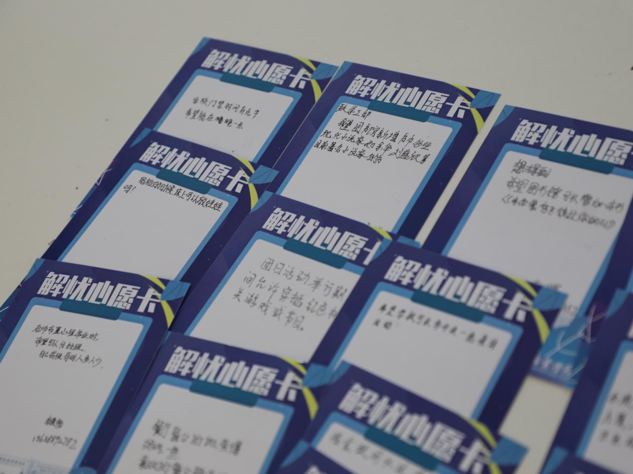 为强化活动效果,学生工作部还特别设计了“解忧心愿卡”,邀请每位参与的学生写下自己的愿望。后续,学生工作部将加强沟通、尽快落实,尽量满足每一名学生的合理诉求和美好心愿。